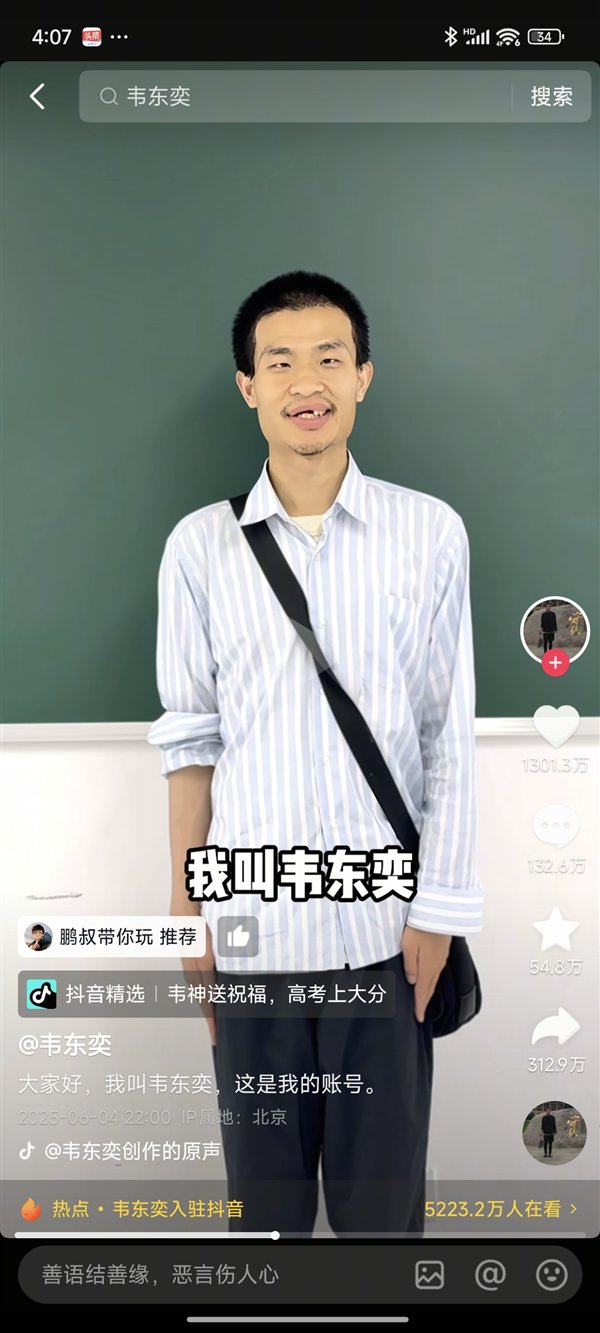 Kuai Technology在6月8日报道说,北京大学的“ Weishong”加入了Douyin,仅投掷一段视频和一个祈祷,而粉丝的数量大于21。...