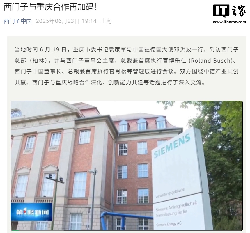 他于6月23日报道说,西门子今天发布了该文件。 6月19日,与钟城市党委员会负责人Yuan Jijun的当地时间...